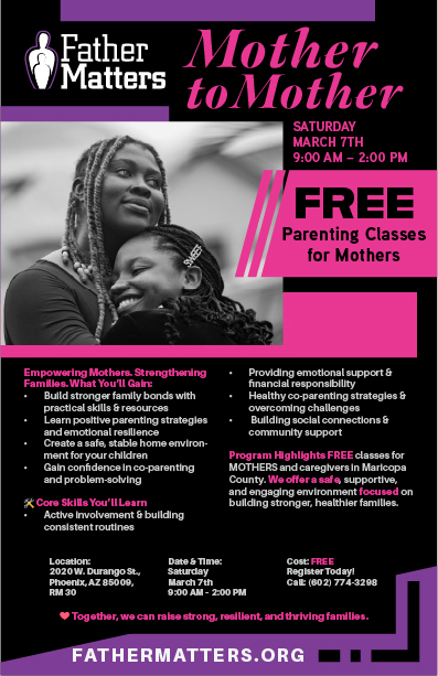 Program Highlights FREE classes for MOTHERS and caregivers in Maricopa County. We offer a safe, supportive, and engaging environment focused on building stronger, healthier families.