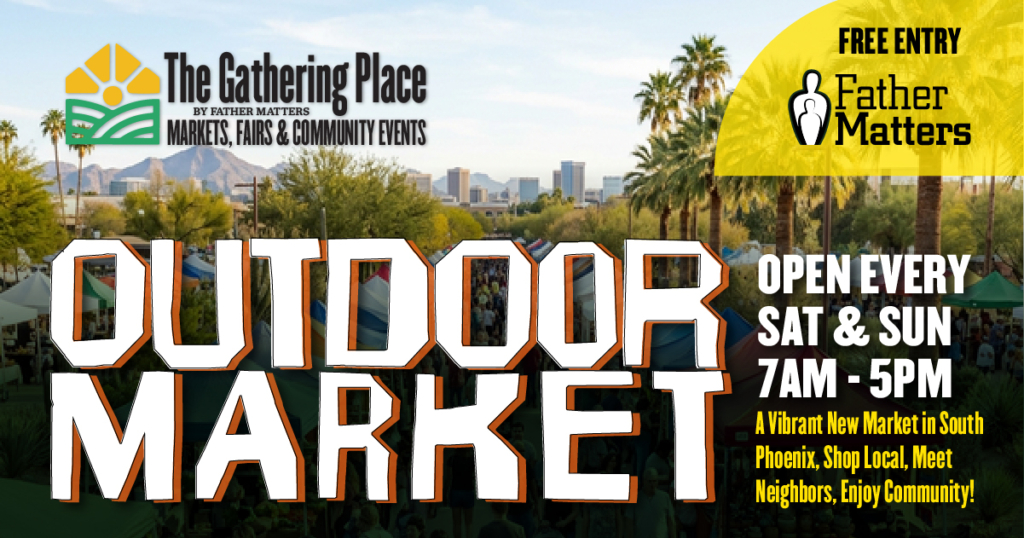 About the Market: The Gathering Place Outdoor Market is a vibrant new market in South Phoenix featuring local vendors offering everything from garage-sale finds and handcrafted goods to wellness products, fresh items, cultural treasures, community resources, and delicious food and drinks.